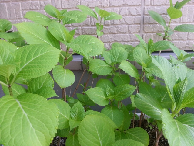 こちらは自分の季節に咲くために準備中の紫陽花です。きれいなミドリ。